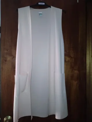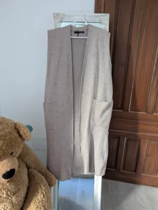 Chaleco largo sin mangas de la marca Sfera. Es una prenda cómoda y versátil. - Diseño abierto. - Dos bolsillos frontales.