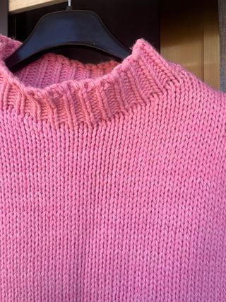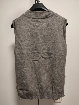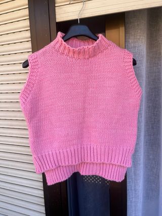Chaleco de punto hecho a mano con un diseño moderno y cómodo. - Cuello alto. - Sin mangas. - Tejido de punto grueso.