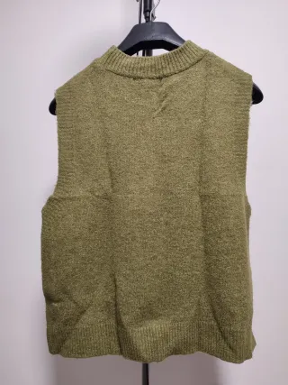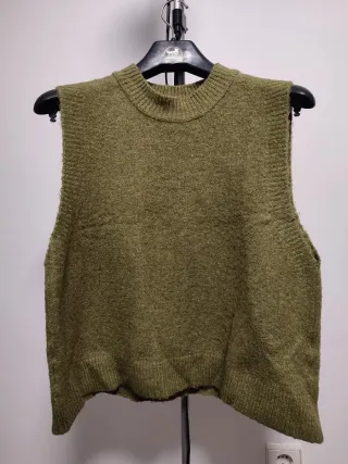 Chaleco de lana con un diseño tejido y trenzado. - Cierre de botones. - Manga corta. - Largo hasta la cadera. No tiene ni una bola. muy buena calidad