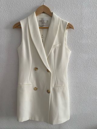 Chaleco de la marca Zara en color blanco. Diseño elegante y versátil. - Cuello en V. - Cierre de botones. - Bolsillo en el pecho.