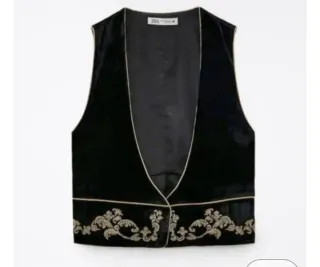 Chaleco ZARA Negro Dorado Bordado Talla Única