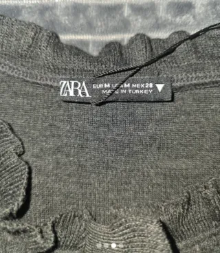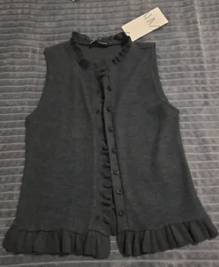 Chaleco de la marca Zara, con un diseño elegante y detalles de volantes. - Cuello redondo con volante. - Cierre de botones. - Volantes en el bajo.