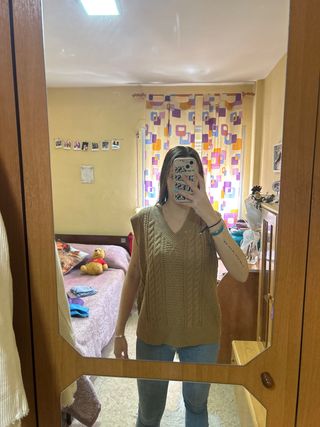Chaleco de punto Lefties en color beige. Es una prenda versátil y cómoda. Talla M - Diseño sin mangas. - Cuello en V. - Cierre de botones. Sin usar, en muy buen estado 😊