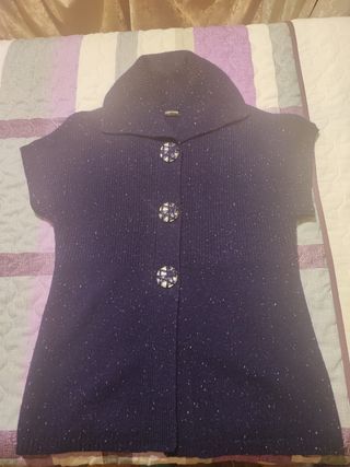 Precioso chaleco de punto de la marca Gerry Weber. Es de color morado y tiene un diseño elegante y atemporal. - Cierre de botones. - Manga corta. - Tejido suave y agradable al tacto.