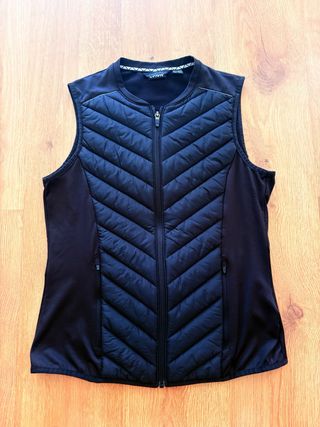 Chaleco de hombre en talla M de la marca Crivit, ideal para running, senderismo. Marcas de uso en la espalda. Parte trasera no lleva pluma. 2 bolsillos delanteros con cremallera.