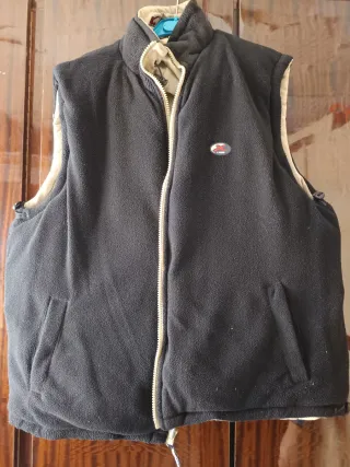 Chaleco unisex reversible, ideal para cualquier ocasión. - Diseño acolchado. - Cuello forrado de pelo. - Bolsillos exteriores con cremallera y solapa. - Cordones ajustables en el bajo. En muy buen estado, no dudes en preguntar 😊