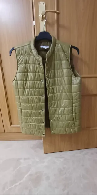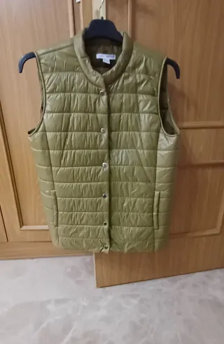 Chaleco acolchado de color verde oliva, perfecto para añadir una capa extra de abrigo. Talla L - Cierre de botones a presión. - Bolsillos laterales. - Cuello redondo. #chaleco #ropadeabrigo #venca