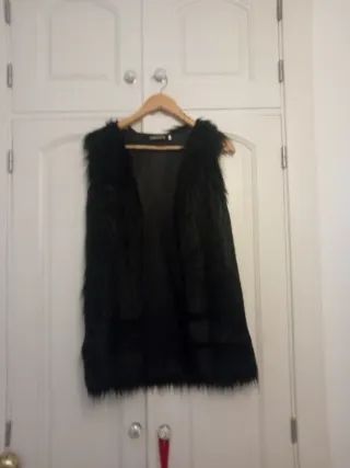 Chaleco de pelo sintético en color negro. Es una prenda muy suave y con un diseño moderno. Talla como una S. - Tacto muy agradable. - Diseño de pelo largo.