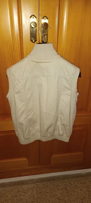 Preciosa chaqueta acolchada sin mangas, ideal para entretiempo. Es de color beige y tiene un diseño sencillo y elegante. - Está en muy buen estado. - Cierre de cremallera. - Bolsillos laterales.