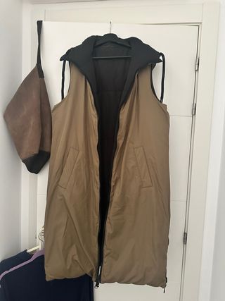 Chaleco largo reversible de Zara. - Diseño largo y sin mangas. - Cremallera frontal. - Bolsillos laterales.