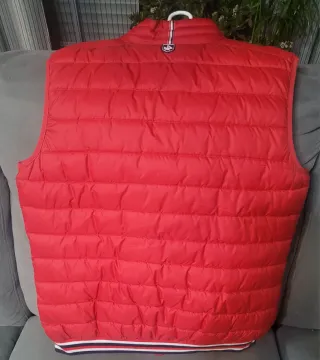 Chaleco acolchado. - Color rojo brillante. - Cierre frontal con cremallera. - Dos bolsillos laterales con en el pecho. - Logo en el pecho
