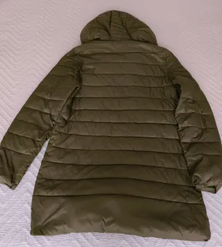 Chaqueta acolchada de Zara en color verde. Diseño moderno y cálido. Tiene algunas manchas en la parte trasera - Cuello alto. - Cierre de cremallera. - Bolsillos laterales. - cierre velcro a la altura de las muñecas