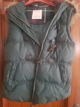 Chaleco acolchado con capucha de Bershka. - Diseño moderno y versátil. - Cierre de cremallera. - Bolsillos frontales. - Cordones ajustables en la capucha.