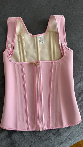 Faja tipo chaleco con un diseño que ayuda a moldear la figura. Cuenta con tirantes ajustables y un cierre frontal de cremallera. - Material exterior con acabado satinado. - Interior forrado para mayor comodidad. - Costuras reforzadas para un mejor ajuste.
