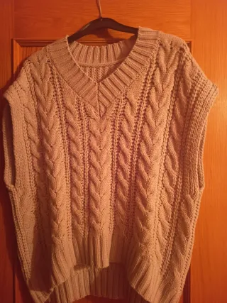 Chaleco de punto con un diseño trenzado muy actual. Es una prenda versátil y cómoda. - Tejido de punto grueso. - Cuello en pico. - Diseño sin mangas. - Acabado con canalé en el bajo.
