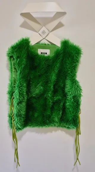 Este chaleco de pelo sintético es una pieza llamativa y moderna. - Diseño sin mangas. - Adornos de cordones laterales. - Etiqueta interior de la marca. - Temporada: 24/25