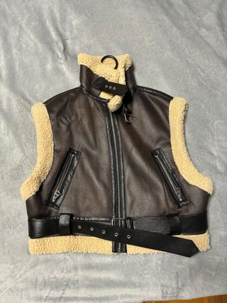 Chaleco estilo aviador con detalles en borreguito. Sin usar