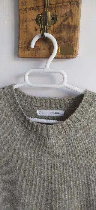 Chaleco de punto gris con cuello redondo y ribetes blancos. Es una prenda versátil y cómoda. - Diseño sin mangas. - Tejido suave y cálido. - Detalle de etiqueta de la marca MULAYA. - Talla Única