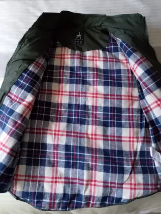 Chaleco acolchado de la marca Atmosphere con un diseño de rombos. - Color verde. - Forro interior a cuadros multicolor. - Cierre de cremallera. - Dos bolsillos laterales.