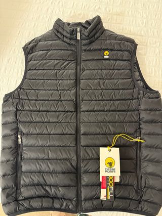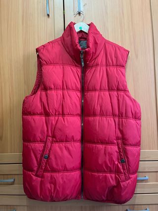 Chaleco acolchado con capucha. Con etiqueta - Es muy gordo, abriga mucho - Cierre frontal con cremallera. - Dos bolsillos laterales con cremallera. - Detalle de logo en el pecho. - Se le quita el gorro Talla L pero es como s Perfecto para regalar