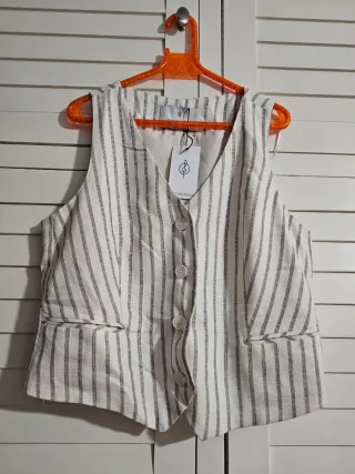 Chaleco de Stradivarius con un diseño de rayas verticales. - Diseño sin mangas. - Cierre de botones. - Bolsillos delanteros.