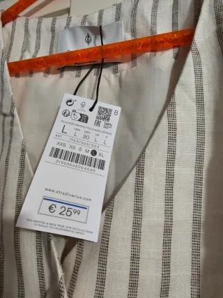 Chaleco de lino Zara, perfecto para un look elegante y fresco. Diseño sin mangas con solapas tipo blazer, bolsillos frontales y cierre de un botón. Muy versátil para combinar. *TODAS LAS PRENDAS DE ROPA SE LAVAN ANTES DE ENVIARLAS #chalecozara #lino #zarawoman #chalecoelegante #lookfresco #chaleco #traje #combinaciones #dospiezas #zara