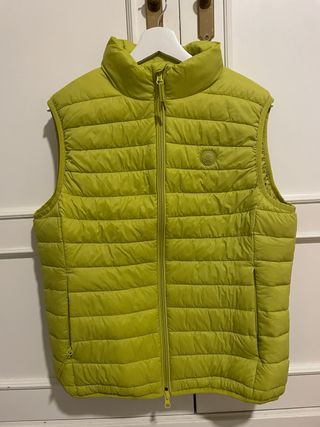 Chaleco acolchado para hombre en talla S. Se encuentra en muy buen estado. - Diseño sin mangas. - Cierre de cremallera frontal. - Bolsillos laterales.