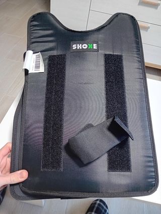 Chaleco anticorte de color negro. Incluye dos placas. - Cierre frontal con cremallera. - Cintas ajustables con velcro en los hombros. - Bolsillo frontal. - Dos placas incluidas.