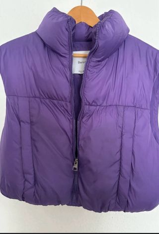 Chaleco acolchado de Bershka en color morado. - Diseño sin mangas. - Cuello alto. - Cierre de cremallera frontal.
