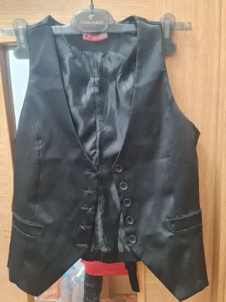 Elegante chaleco de traje, perfecto para complementar tu atuendo. - Diseño sin mangas. - Cinturón para ajustar a la cintura. - Cierre con botón.