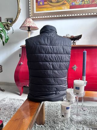 Chaleco acolchado con capucha. Con etiqueta - Es muy gordo, abriga mucho - Cierre frontal con cremallera. - Dos bolsillos laterales con cremallera. - Detalle de logo en el pecho. - Se le quita el gorro Talla L pero es como s REBAJADO