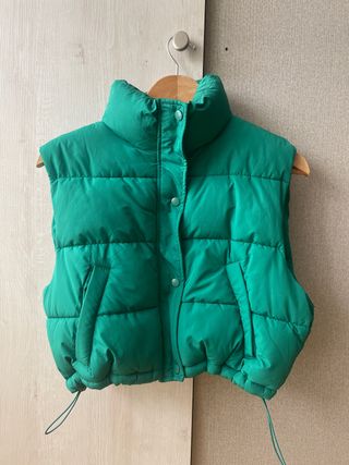 Chaleco acolchado verde, es CROP TOP