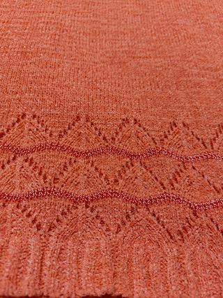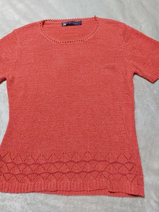 Chaleco de punto fino con manga corta y un bonito detalle calado en el bajo. - Cuello redondo con borde festoneado. - Diseño calado en forma de rombos en la parte inferior. - Tejido ligero y transpirable.