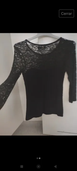 Elegante chaleco de Zara con un delicado diseño de encaje. - Manga larga. - Cuello redondo. - Detalle de volantes en el bajo.