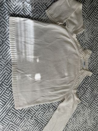 Chaleco de punto fino en color beige. Es un chaleco de manga larga con escote Bardot. - Tejido de punto. - Diseño Bardot. - Manga larga.