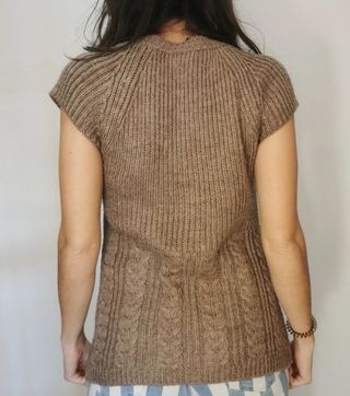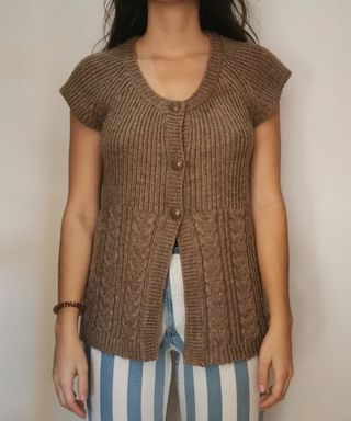 Chaleco de punto con manga corta y botones. - Diseño con trenzas en la parte delantera. - Cuello redondo. - Tejido de punto acanalado.
