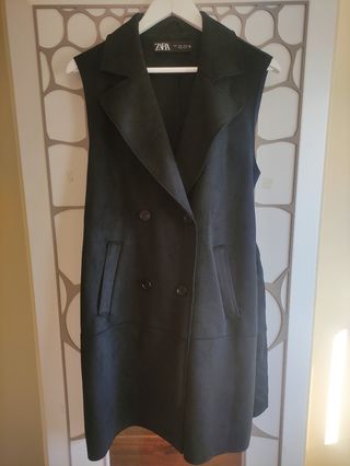 Chaleco tipo blazer largo tipo antelina de Zara. Talla S pero como es oversize vale hasta una XL Es de esta temporada y lo vendo porque no me termina de convencer pero está impecable como se puede ver en las fotos.