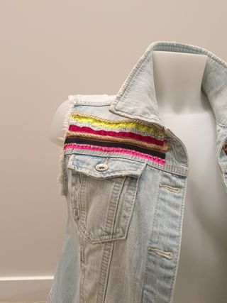 Chaleco vaquero de corte moderno. - Diseño con botones frontales. - Dos bolsillos en la parte delantera. - Cuello redondo y sin mangas.
