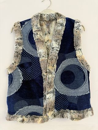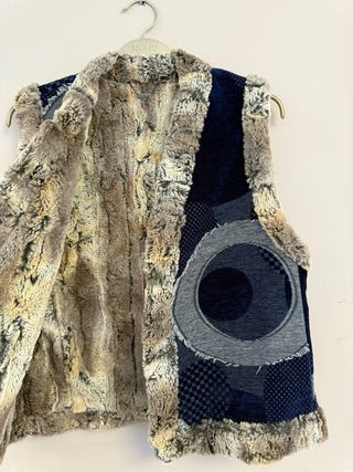 Chaleco reversible de Custo Barcelona con un diseño patchwork único. - Acabado con pelo sintético. - Estampado geométrico y circular. - Bordes deshilachados.