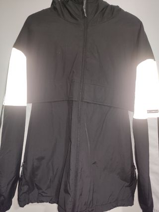 cazadora color negro con paneles reflectantes para hombre está nueva es talla L👌🏼. se puede ajustar de la cintura.