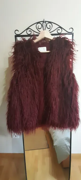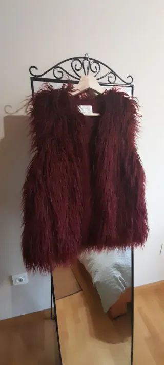 Chaleco de pelo de Zara en color burdeo. Es una prenda llamativa y con mucho estilo. Talla 11.12 de zara kids vale perfectamente para s o xs. - Diseño de pelo largo y voluminoso. - Abertura frontal. - Ideal para añadir un toque diferente a tus looks.
