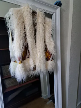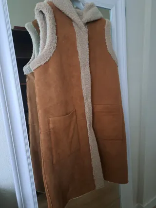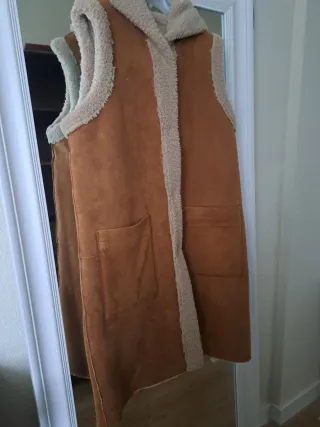 Chaleco de borreguillo, perfecto para añadir una capa extra de abrigo. - Material suave y cálido. - Diseño sin mangas. - Abertura frontal. Un solo uso como nuevo . 65cm de largo y 50 cm de ancho