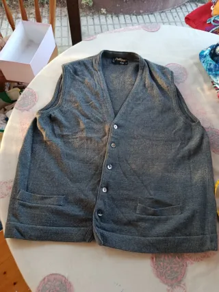 Chaleco de punto fino de la marca Pulligan. Adjunto fotos con medidas - Cuello en V. - Cierre de botones. - Dos bolsillos delanteros.