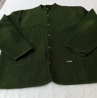 Preciosa chaqueta de pura lana virgen de la marca Wienerloden fabricada en Austria de color verde oliva con un diseño elegante y atemporal ,años 90. Mi padre solo pudo ponérsela 2 veces, lleva mucho tiempo guardada - Diseño con trenzas decorativas en hombros y bolsillos. - Cierre de botones. - Dos bolsillos frontales. - Cuello redondo. - Cuello redondo. - Cierre de botones. - Bolsillos delanteros. - Detalle de trenzado en hombros y bolsillos.