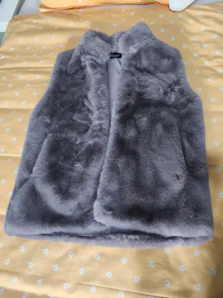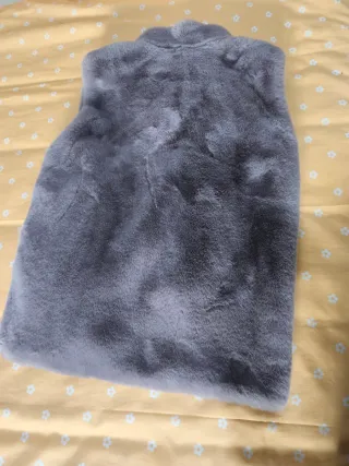 Chaleco de pelo sintético en color gris. Es una prenda suave y cálida. - Material: Pelo sintético.
