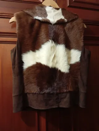 Chaleco con un diseño único y llamativo. - Combinación de piel en tonos marrones y blancos. -piel de vaca