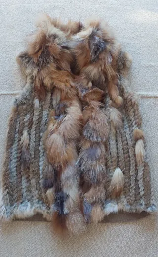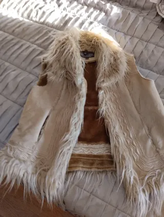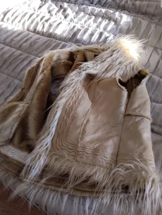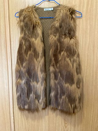 Chaleco largo efecto piel. - Con capucha. - Cierre de botones a presión. - Bolsillos frontales con cremallera. -Puesto 1 vez.