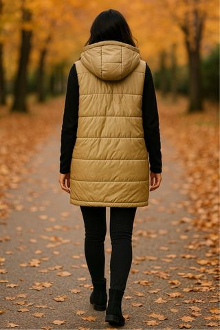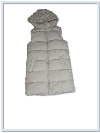 Chaleco largo acolchado con capucha. - Cierre de cremallera. - Diseño moderno y versátil.
