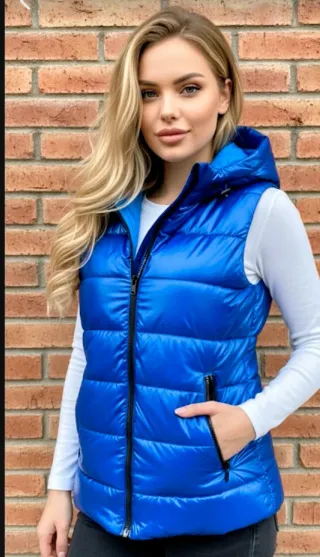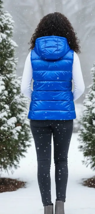 Chaleco acolchado con capucha, ideal para el frío. Disponibles también en verde - Cierre de cremallera. - Bolsillos laterales con cremallera. - Diseño acolchado.