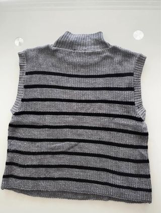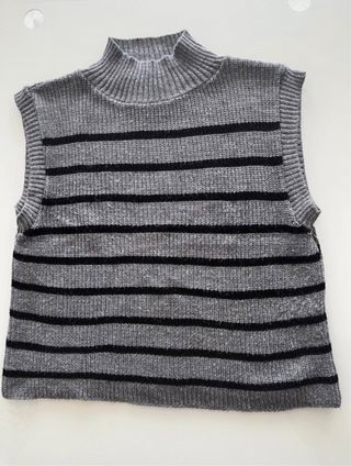 Chaleco de punto con cuello alto y diseño de rayas horizontales. - Tejido de punto suave. - Cuello alto acanalado. - Diseño sin mangas. - Rayas en contraste.